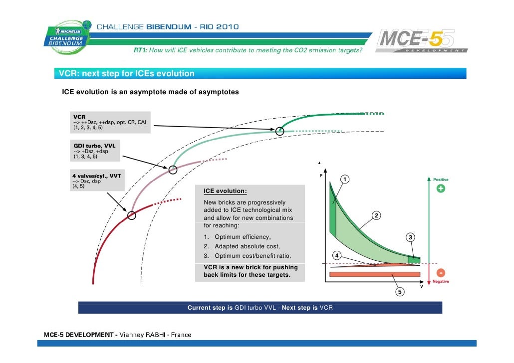 At the end of four years Research & Development programme, the bench test results for the MCE5 VCR engine are presented Downsized supercharged. RABHI VIANNEY Primary Class 60/600 Other Classes 60/604 International Classes F02M25/07;. Vianney Rabhi, director of strategy of MCE5 Development SA, said that with a 61 minimum compression ratio, the current version of the MCE5 VCR achieves 40 bar peak BMEP at 10 rpm with no irregular combustion If peak BMEP is maintained below 35 bar, fuel enrichment is not necessary.