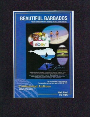 Continental Airlines 04 Work Hard Fly Right Beautiful Barbados From Newark Ad Ebay