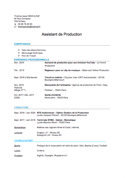 Thomas Makhlouf Est A La Recherche D Un Stage Dans L Audiovisuel Mediaclub