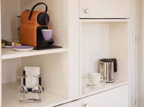 Newly appointed furniture such as bedside table by “Starck”. Located close to Place de la Madeleine, the Opéra and the Parisian department stores, Le Vignon is a charming and comfortable hotel where you can relax after a day of work, sightseeing or shopping.
