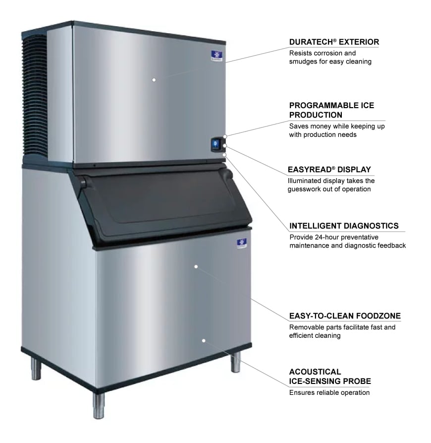 Manitowoc Ice Idt1900a D970 1900 Lb Indigo Nxt Full Cube Ice Maker W Bin 8 Lb Storage Air Cooled 8 230v 1ph