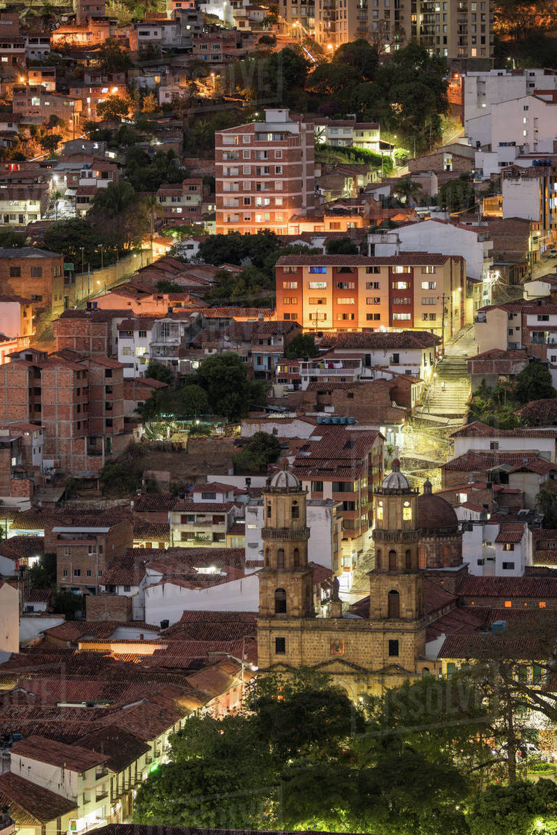 View Of San Gil At Night San Gil Santander Colombia South America Stock Photo Dissolve