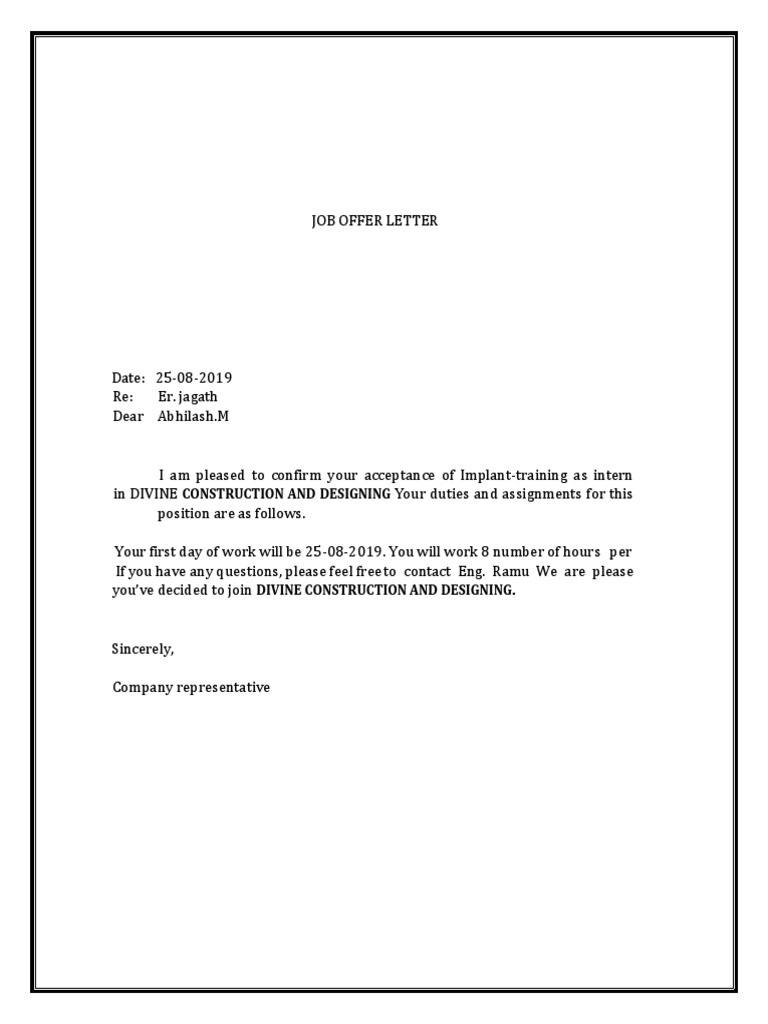 Intern Offer Letter Acceptance Letter Offer And Acceptance Cover Letter For Internship