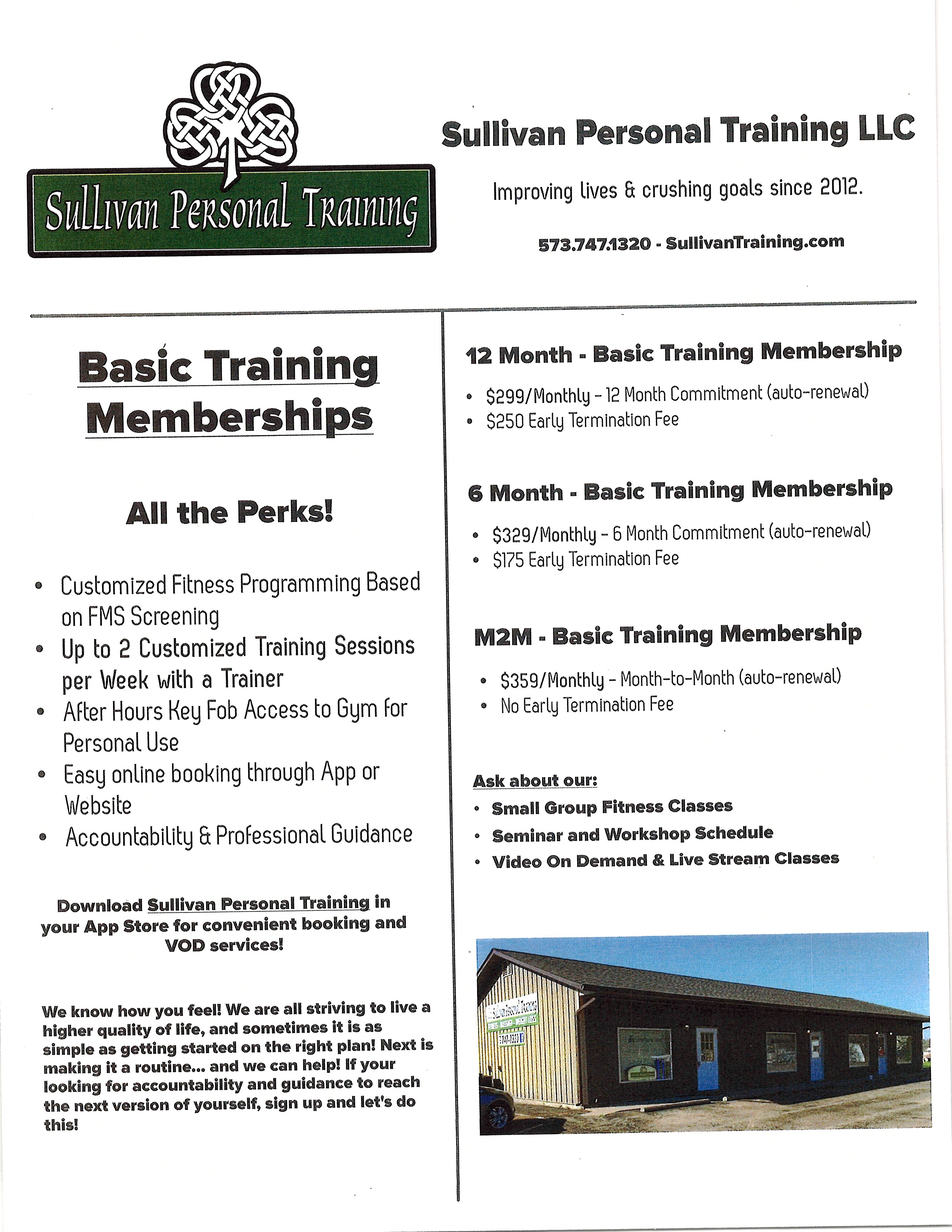 Personal Training Price Sheet