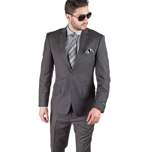 Slim Fit Men Suit 2 Button Slate Grey Micro Textured Notch Etsy