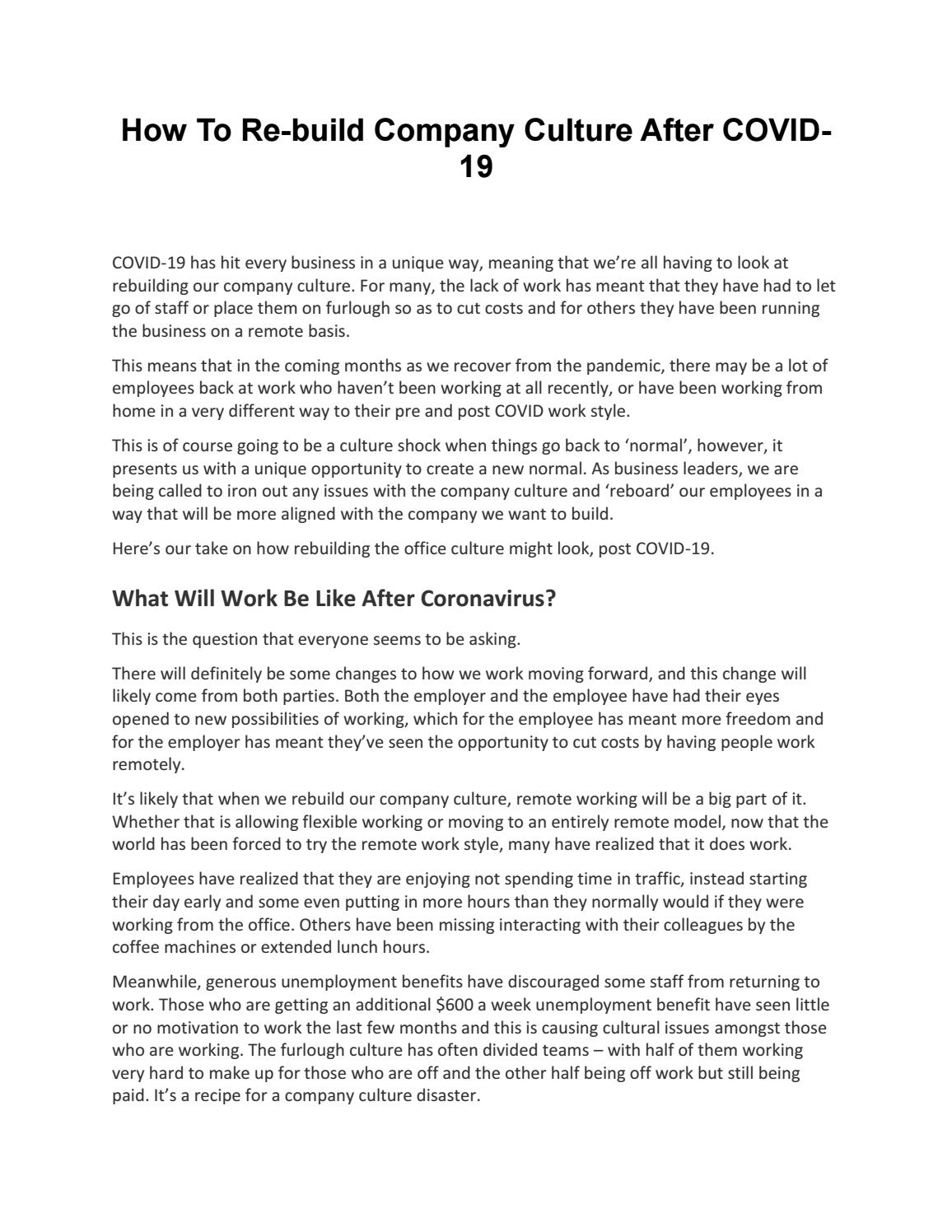 How To Re Build Company Culture After Covid 19 By Jeri Ana Smith Issuu