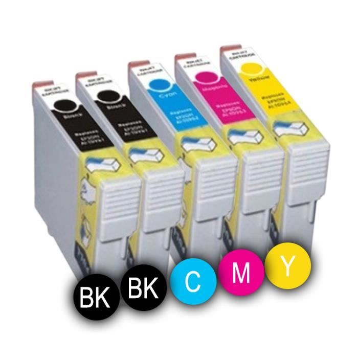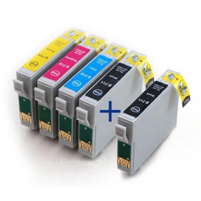 Pack 5 Cartouches Compatibles Epson T0715 Stylus Dx7450 1 Noir 1 Gratuite Et 3 Couleurs Prix Pas Cher Cdiscount