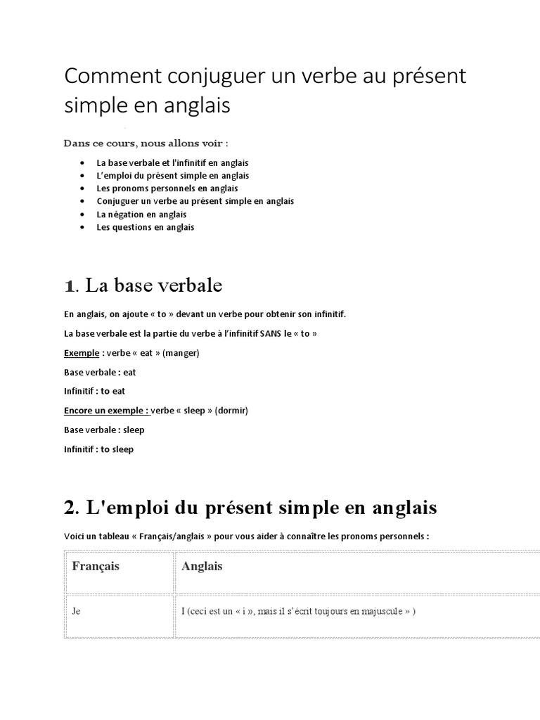 En effet, les verbes au présent simple en anglais ont la particularité de se conjuguer de la même manière à toutes les personnes C’estàdire que leur terminaison ne changera pas excepté seulement à la 3e personne du singulier.