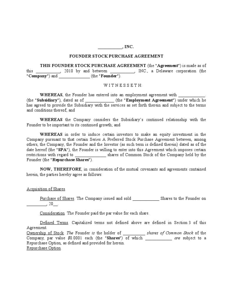 Founder Stock Purchase Agreement Template 1 Securities Act Of 1933 Stocks