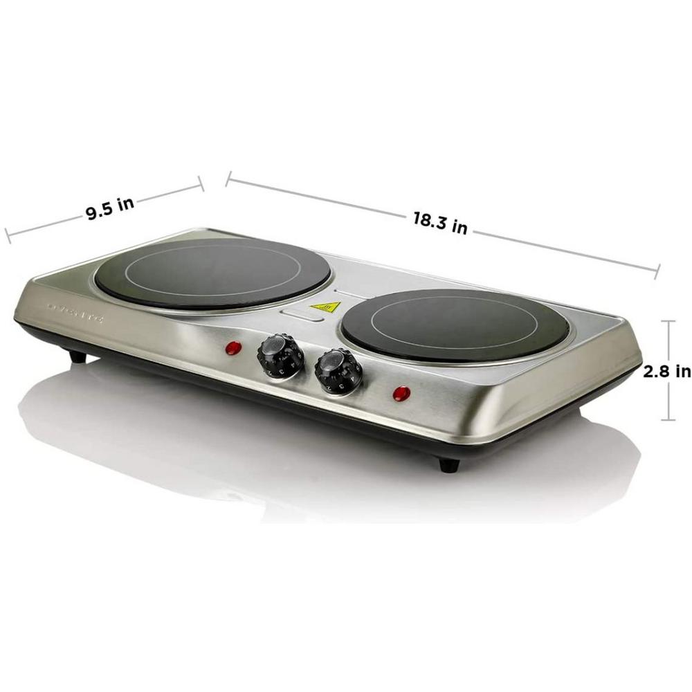 Rosewill Portable Induction Cooker Electric Hot Plate Includes 35Qt Stainless Steel Pot RHAI 98 93 99 2 Double Induction Cooktop Portable 1V Portable Digital Ceramic Dual Burner w/ Kids. Hot plates styles vary from single burners, double burners (with one side pulling more electricity) and induction models Cooking surfaces on hot plates also vary, from traditional coils, integrated coils and glass Measuring Electrical Power Use An electric utility company provides power to a home or business in units called kilowatthours (kWh). 2Burner 6 in Black Infrared Electric Countertop Grill/Hot Plates by Brentwood Appliances (40) $ 66 33 65 in and 7 in Silver Double Hot Plate Electric Glass Infrared Stove, 1700Watt by Ovente (38) $ 38 91 2Burner Stainless Steel 9 in Dual Electric Burner Cooktop by Better Chef (8) $ 41 61.