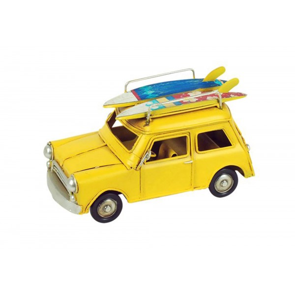 Vehicule Miniature Mini Cooper Modele Jaune L 16 Cm
