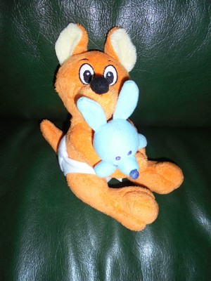 Peluche Kangourou Orange Et Son Bebe Bleu Publicite Finaref 18 Cm Ebay