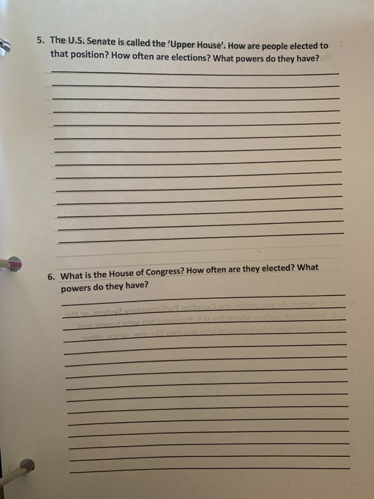 5 The U S Senate Is Called The Upper House Ho Chegg Com