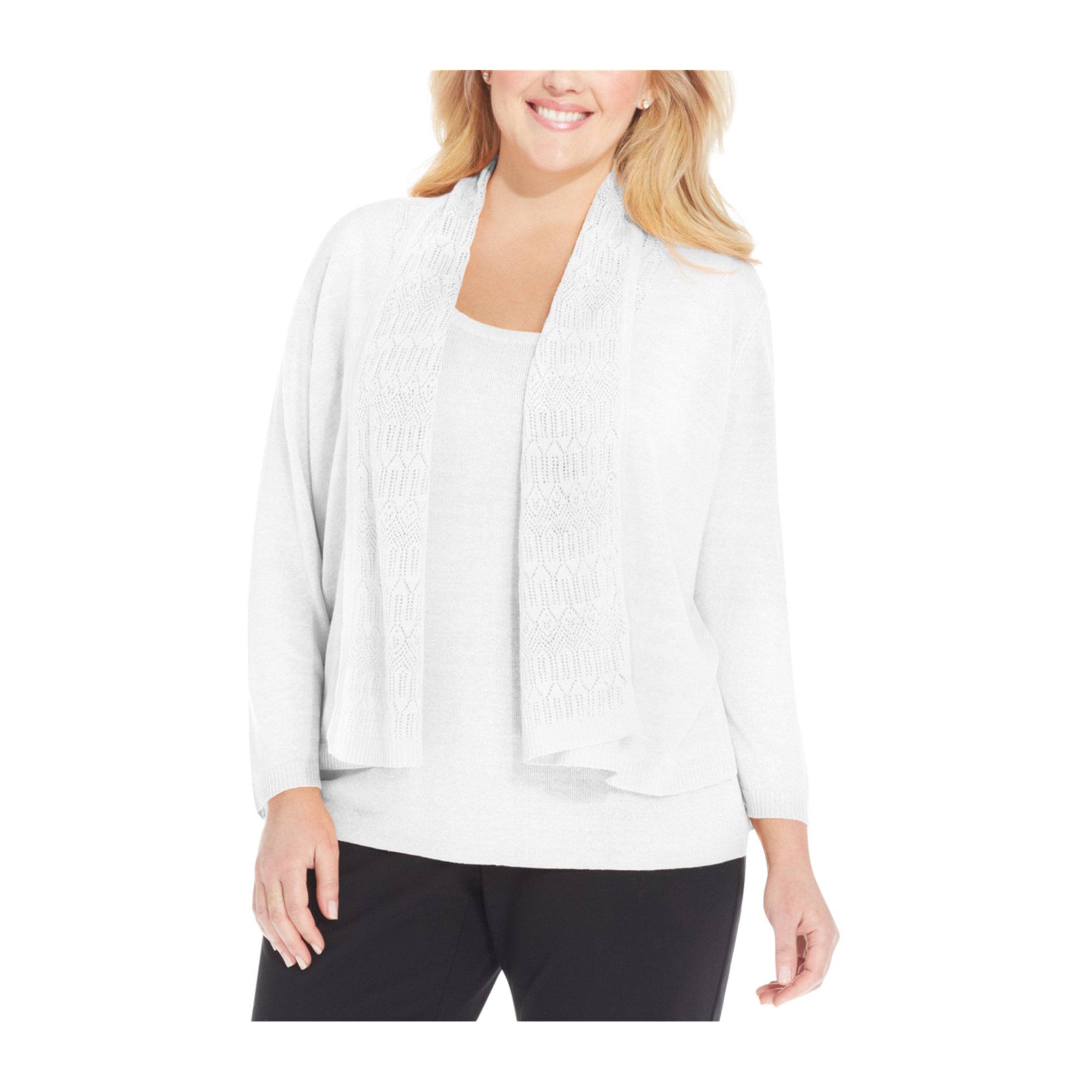Jones New York Womens Pointelle Cardigan Sweater White 1x Plus Size Walmart Canada
