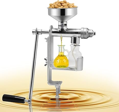 Flame from the small oil lamp (included) heats seeds so you can extract more oil Press up to 8 cups per hour Culinary oils include sesame, safflower, sunflower, grape seed, canola, apricot kernel, coconut, hazelnut, peanut, pumpkin and walnut oils Use in cooking, as health supplements, and in making allnatural homemade soaps, beauty products, even paints Also makes peanut butter and other nut butters Press cake (what remains after pressing the seeds) can be used as animal feed Mount to a. The seed is placed into the feeder either by labor or by conveyor Then through the huge pressure or violent motion in the closed press, the original structure of oil seeds will be broken and a series of changes happened inside. Oil Press manual oil press This new design manual oil press can pressed more than 10 types of seeds which at least 25% oil in the seeds Such as peanuts, rapeseeds, sesame, copra, cottonseeds, hazelnut, linseed, oil palm kernel, pumpkin seed, sun flower seeds, walnuts, etc This mini oil press is your best choice for home.