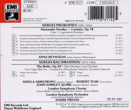 Sergei Prokofiev Andre Previn London Symphony Orchestra Anna Reynolds Sheila Armstrong John Shirley Quirk Robert Tear London Symphony Chorus Prokofiev Alexander Nevsky Rachmaninov The Bells Amazon Com Music
