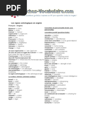 Les Signes Astrologiques En Anglais Fiches