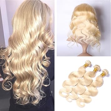 Amazon Com Ruma Hair Platinum Blonde 360 Lace Frontal Closure With Bundles 613 Bleach Blonde Body Wave Brazilian Virgin Human Hair With Pre Plucked 360 Full Lace Band Frontals 10 10 10 10 Beauty