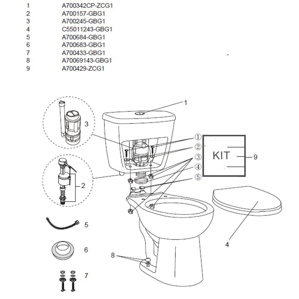 American Standard Toilet Repair Parts For Plebe Series Toilets
