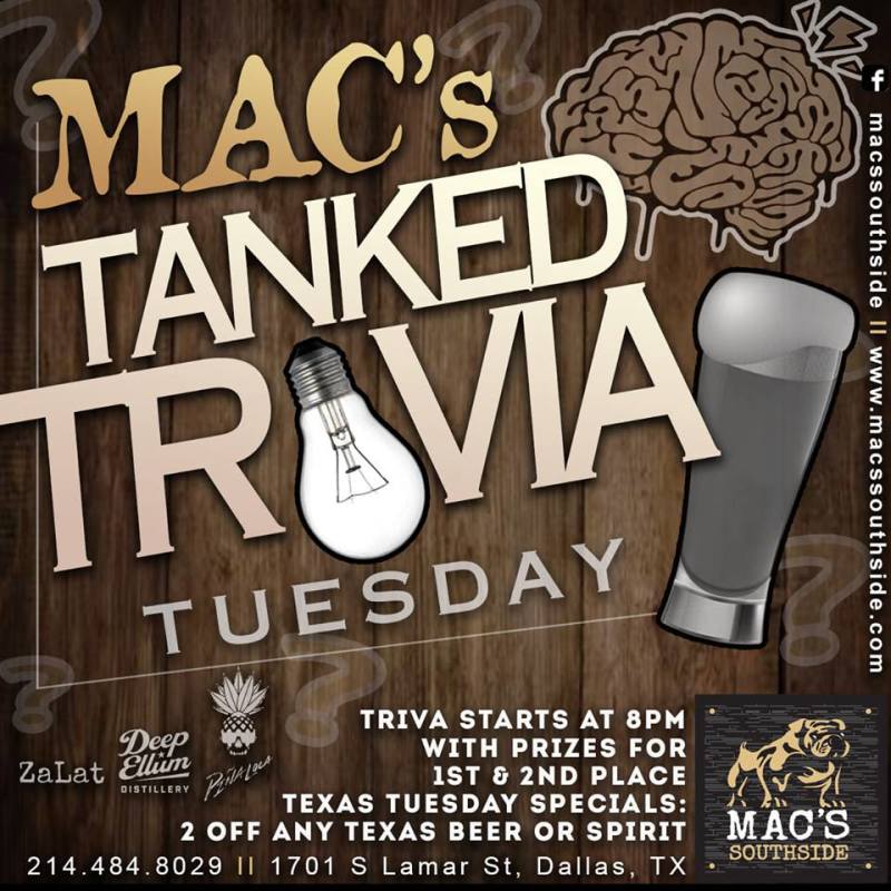 Tanked Trivia Tuesday In Dallas At Mac S Southside