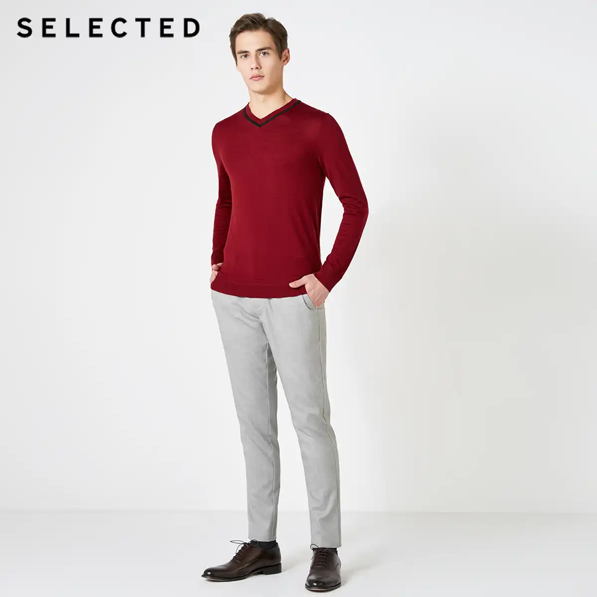 Selected 100 Wool V Neckline Long Sleeved Pullover Knit Men S Autumn Sweater Clothes T Pullovers Aliexpress