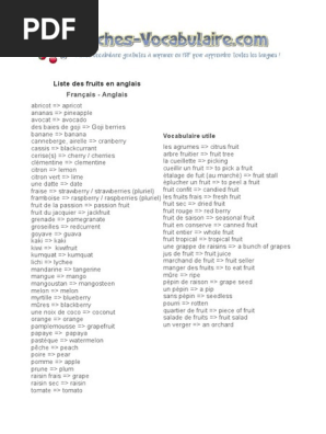 Liste Fruits En Anglais