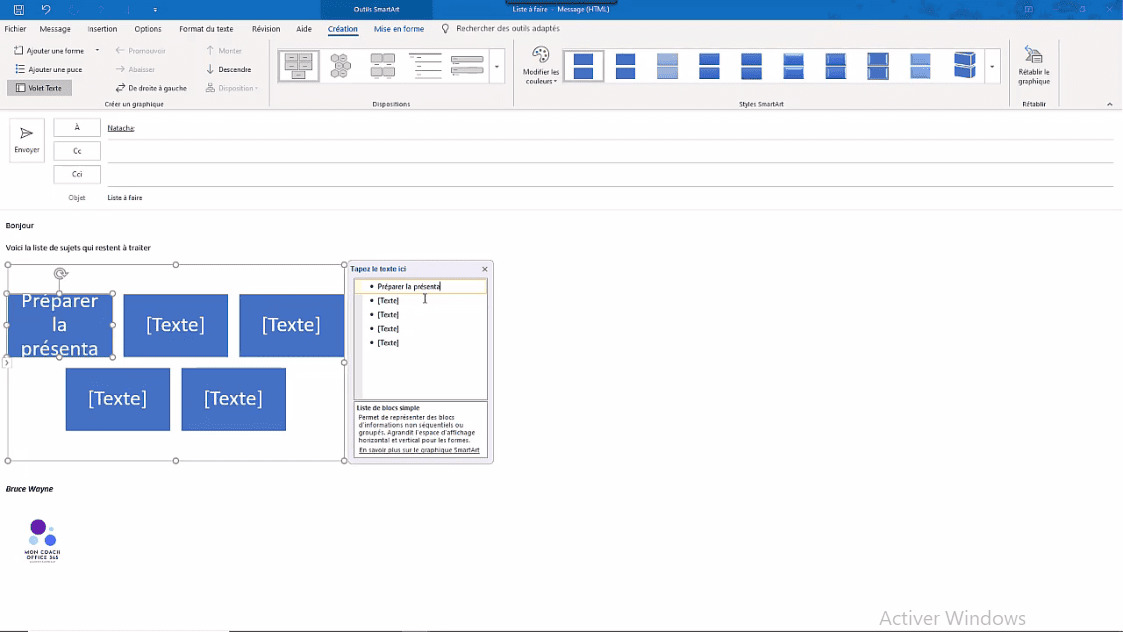 Meilleur Tuto Gratuit Office 365 Outlook Word Powerpoint Onenote Excel Onedrive Envoyer Un Message Avec Une Smartart Alphorm Com