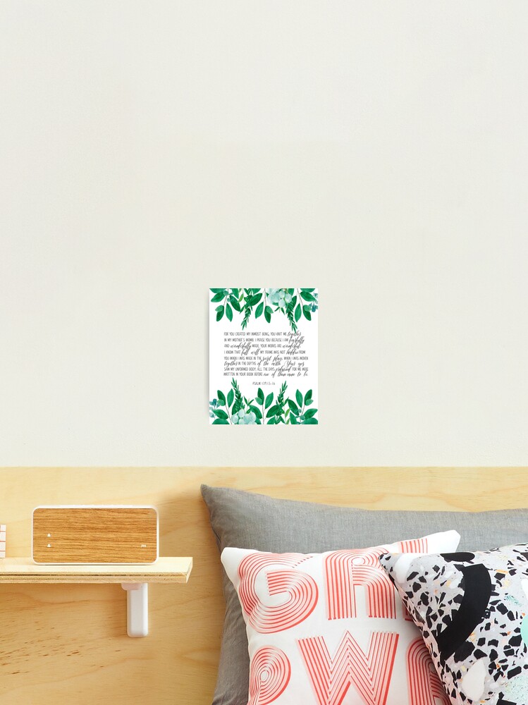 Impression Artistique Psaume 139 13 14 Pour Vous A Cree Mon Etre Le Plus Proche Bible Wall Art Art Des Ecritures Citation Inspirante Christian Home Decor Aquarelles Fleurs Par Dzhenka Balimez Redbubble
