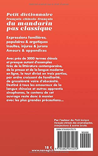 Petit Dictionnaire Francais Chinois Francais Du Mandarin Pas Classique Langue Familiere Argotique Insultes Injures Jurons Amours Appendices French Edition Brossollet Alexis Books Amazon Com