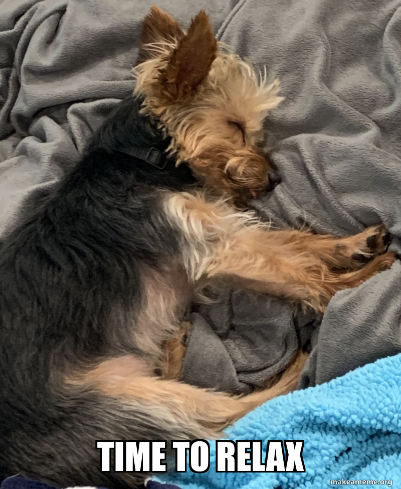 Relax time meme. Telling someone to relax isn’t easy If he’s too angry, anxious or irrational, he might feel offended by you emphasizing his lack of selfcontrol and focus He might even turn all his negative emotions towards you We’ve put together this chill meme collection to put your good intentions on a lighter and funnier note Go on and share it. A time when communications break down, travels are erratic, computers and wifi fail and other such possible catastrophes befall us However, not everyone knows that this time has major benefits That it is a reminder to relax, let go and create balance. So tired memes why not tell the world that you are tired and not feeling well Sometimes when you are facing stressed time then you really want to get off with the daily routine of yours and want to show the world that how much you are irritated right now and how much you want rest and how much you need to relax your mind and body.