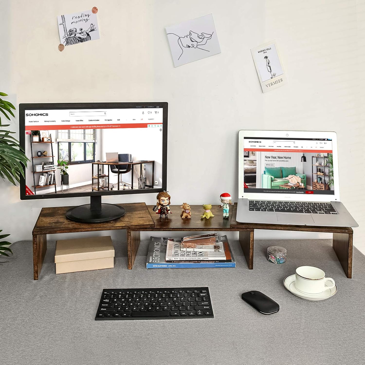 Marron Rustique Lld101by Organisateur De Bureau 2 Niveaux Pour Pc Et Ordinateur Portable Support D Ecran Style Industriel Rangement Songmics Rehausseur D Ecran Gain De Place Ameublement Et Decoration Bureau