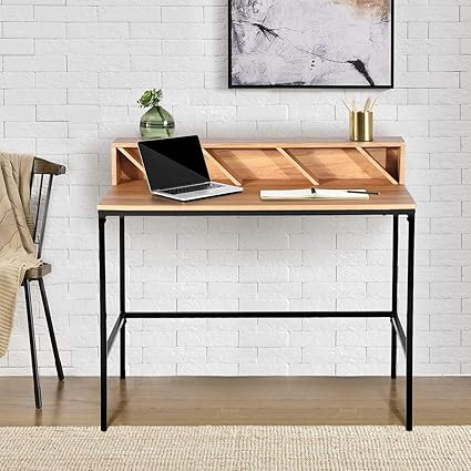 Ihouse Table De Travail Bureau Moderne Avec Etageres De Rangement Pour Etude Ordinateur Portable Avec Planche En Bois Et Pieds Metalliques Amazon Fr Cuisine Maison