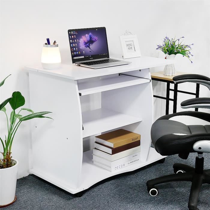 Bureau Informatique Meuble De Rangement Pc Tablette Clavier Table D Ordinateur En Bois Blanc Achat Vente Meuble Informatique Bureau Informatique Meuble De Soldes Sur Cdiscount Des Le Janvier Cdiscount