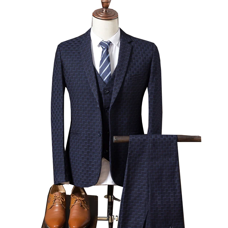 Angleterre Style Hommes D Affaires Costume Costume Bleu A Carreaux Costume Veste Gilet Pantalon Livraison A Repasser Processus Manches Longues M 5xl Aliexpress