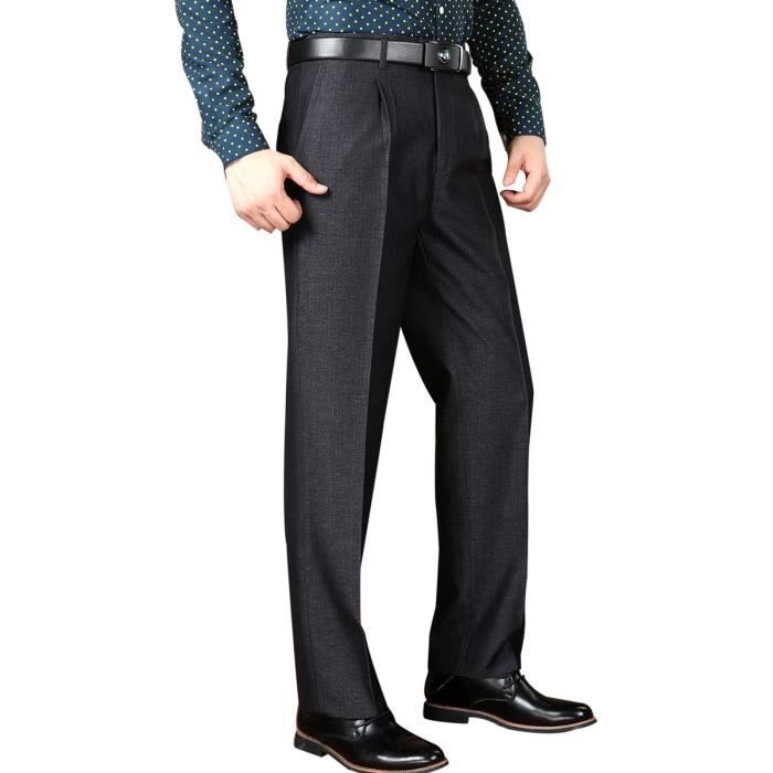 18 Nouveau Pantalon Sans Repasser De Costume Pour Homme A Taille Haute Style D Affaire Classique Coupe Droite Casual Gris2 Achat Vente Pantalon Cdiscount