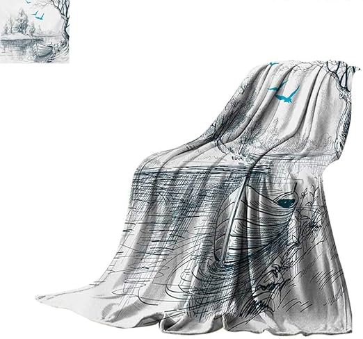 Landscapefluffy Blanketboat On Calm River Trees Birds Twigs Sketch Drawing Clipart Water Minimalistbed Blanket 50 X30 White Gray Blue Amazon Co Uk Kitchen Home