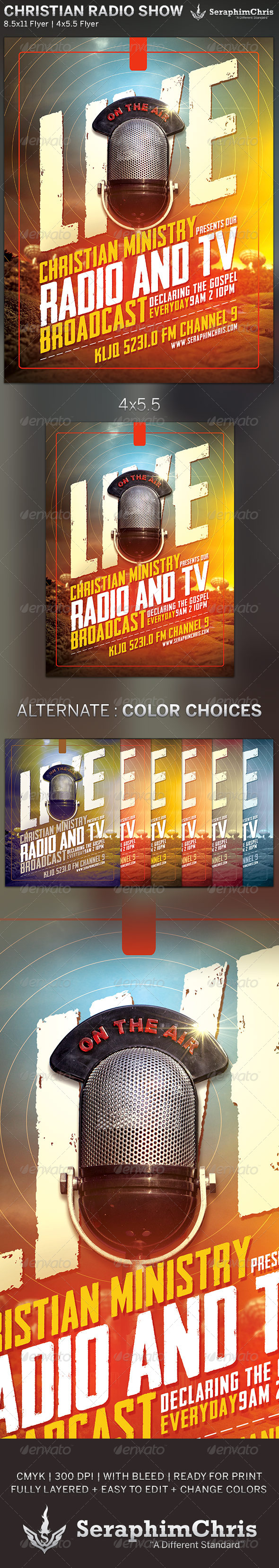 Description Promote a station contest or draw attention to a new host with radio/broadcast flyers you design yourself using our templates and editor Get into the groove of your design with your choice of layout, add colors and fonts of your choice, then hone your design with little details that make it stand out in your recipients' hands.