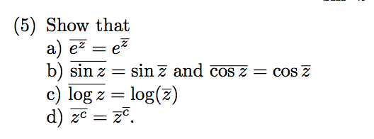 Solved Show That Bar E Z E Bar Z Bar Sin Z Sin Bar Z Chegg Com