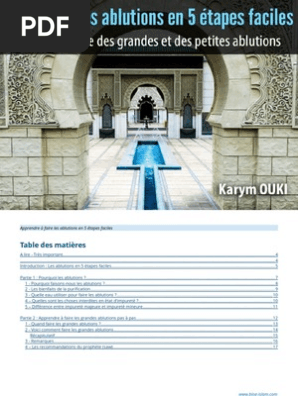 2) Le bain rituel les deux jours de l’Aïd les savants l’ont recommandé 3) Le bain rituel de celui qui a lavé un mort ceci est recommandé selon la parole du Prophète « que celui qui lave un mort se lave donc à son tour et que celui qui porte un mort fasse ensuite ses ablutions» hadith approuvé par Tirmidhî et ibnou Hajar 4) Le bain rituel est recommandé lors de la. Comment faire wudhu Wudhu, aussi appelé ablutions, est à la fois un rituel traditionnel et un moyen pratique effectué par les musulmans qui essayent de garder une bonne hygiène corporelle et spirituelle Traditionnellement, wudhu fait. Le tayammoum A Les raisons légales qui permettent son utilisation B Le support du tayammoum (le sa’id) C Les.