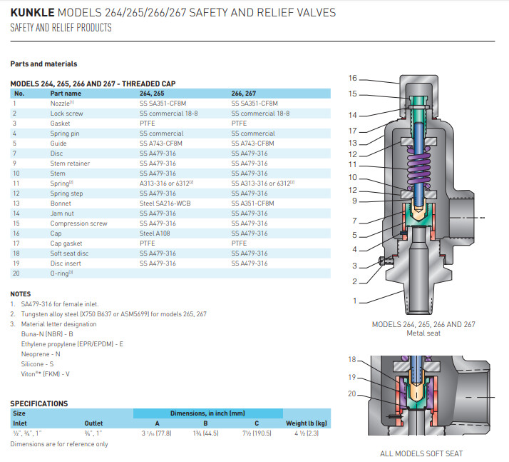 Additionally, for a particular relief valve size, it is often possible to provide a greater sensing area with a diaphragm design than would be feasible with a piston style design (3) THE REFERENCE FORCE ELEMENT (spring) BPR Inlet and outlet ports are 1032 UNF internal for most models Type 2 Outlet port is 1/7 NPT external (which is. Basic requirements are given for direct springloaded pressure relief valves and pilotoperated pressure relief valves as follows orifice designation and area;. Inlet Size (Inch) 21/2 Outlet Size (Inch) 21/2 End Connections MNPT Maximum Working Pressure (psi) 5 Type Safety Relief Valve non code Material Brass Cubic Feet per Minute View Product.