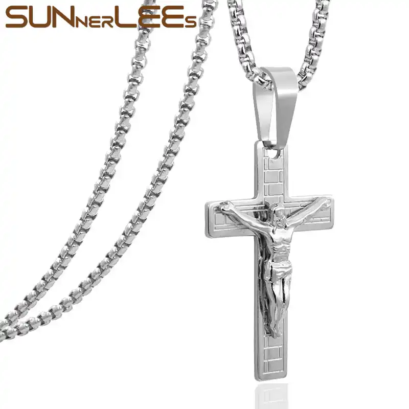 Sunnerlees 316l Aco Inoxidavel Jesus Cristo Cruz Pingente Colar Contas Link Corrente Masculino Feminino Presente Sp213 Colares C Pingente Aliexpress