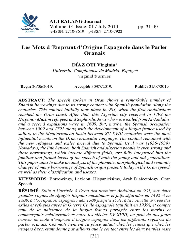 Les Mots D Emprunt D Origine Espagnole Dans Le Parler Oranais Symbols Human Communication