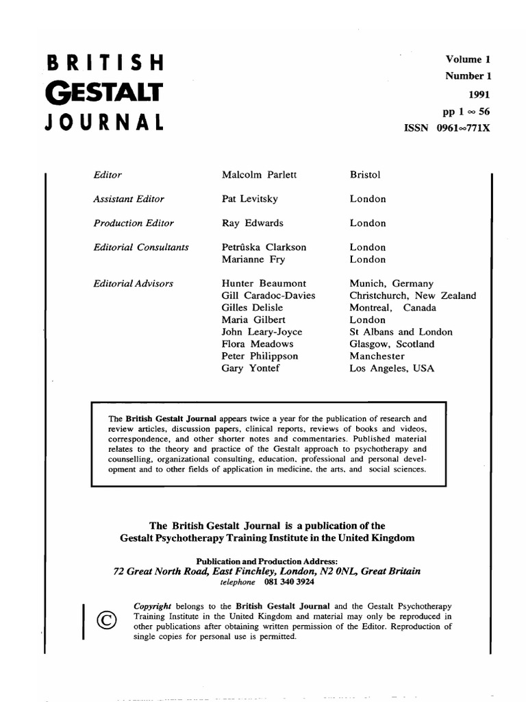 Bgj V1n1 Gestalt View On Personality Disorders Gestalt Therapy Psychotherapy