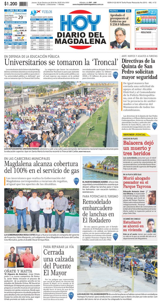 Hoy Diario Del Magdalena Buen Dia Les Desea Hoy Diario Del Magdalena Compartimos Con Ustedes Nuestra Portada1a De Hoy T Co Zaclioyhnv T Co Zkx0noxwcs