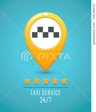 Taxi Service Banner Yellow Taxi Icon Yellow Map Pin With Stock Vector Crushpixel