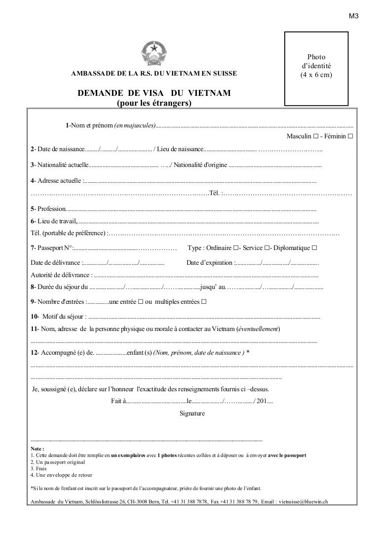 Formulaire M3 Visa Vietnam