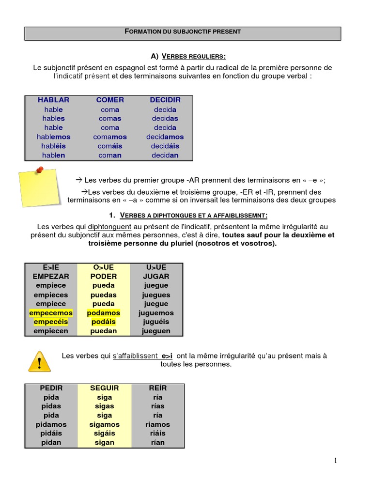 Le Present Du Subjonctif En Espagnol Conjugaison Et Emploi Espagnol Pas A Pas