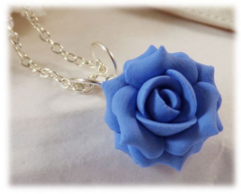 Dainty Blue Rose Necklace Blue Rose Jewelry Small Blue Etsy