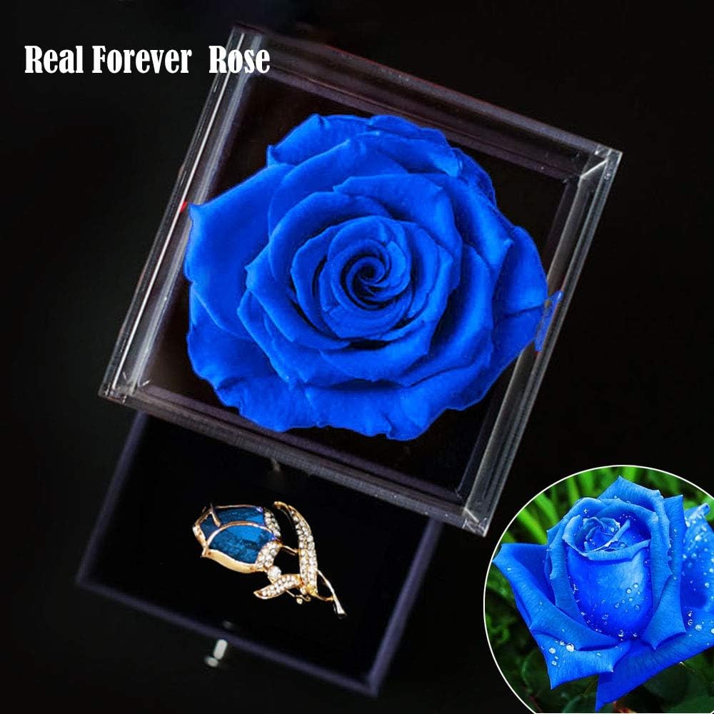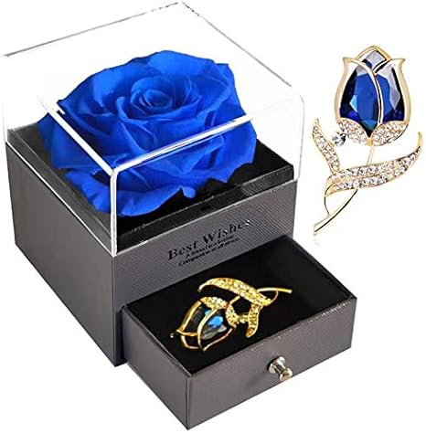 Amazon Com Sweetime Blue Rose Gift Box Enchanted Real Rose With Ruby Rose Brooch Eternal Flower Rose Handmade Preserved Rose Forever Blue Rose Gift For Her On Mother S Day Birthday Kitchen