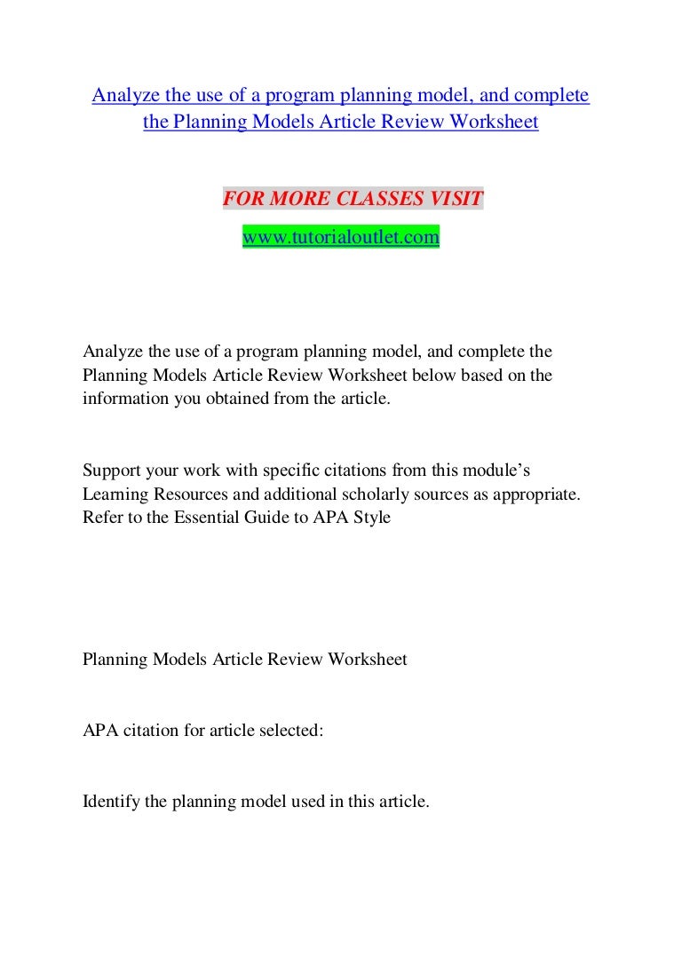 Analyze The Use Of A Program Planning Model And Complete The Planning Models Article Review Workshe By Davvvid416 Issuu